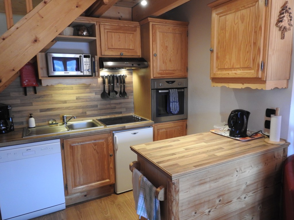 The chalet has an open plan kitchen. It is fitted with an oven, fridge, dishwasher and ceramic hob. The kitchen is fully equipped with plenty of serving dishes, saucepans, cooking utensils etc. As an added bonus there is an electric fondue set and raclette grill.